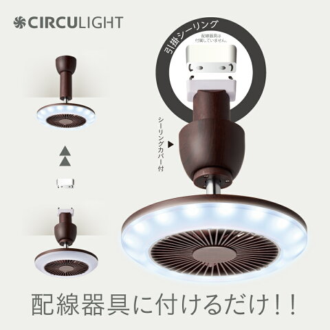 メーカー: ドウシシャ / DOSHISHA シリーズ名: サーキュライト ■電源 :AC100V 50/60Hz ■消費電力:LED最大 約9W、FAN最大 約4W ■機能 :LED2段階調節、風量3段階調節 ■光束 :810Lm(電球60W相当) ■風量 :3段切替+OFFスイッチ ■外形寸法:約Φ190×190mm ■重量 :約400g ■付属品 :専用カードリモコン(ケース、お試しコイン電池付)、取付用ネジ 以下の器具、環境では絶対に使用しないでください 調光のついた電球器具や回路。