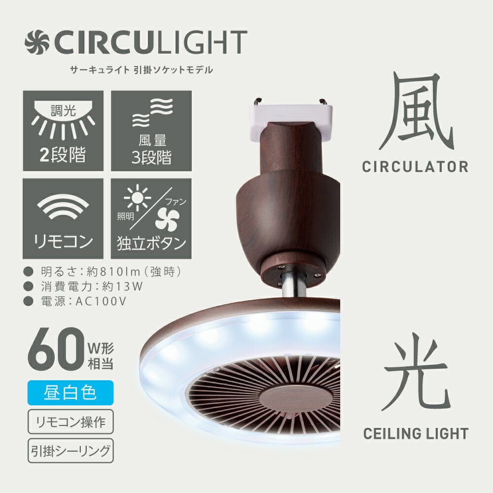 ドウシシャ サーキュライト ソケットモデル 引掛シーリング式 ダークウッド 昼白色 810lm(電球60W相当)、485lm(電球40W相当) 調光2段切替 リモコン付 DSLH60NDW