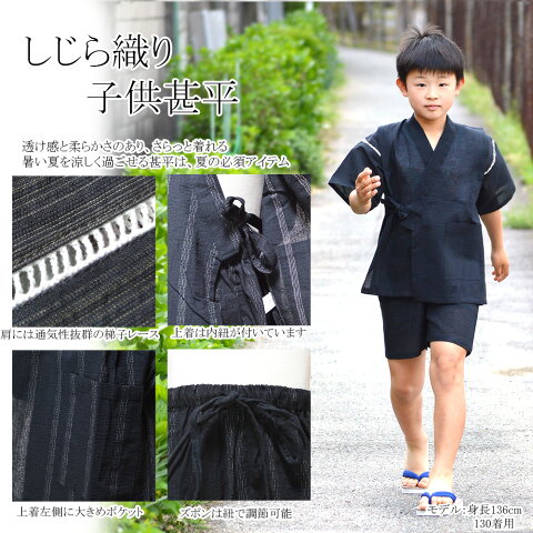 浴衣よりも動きやすいので、活発な男の子に大人気! 夏の定番、綿麻混合しじら織りの甚平です。
