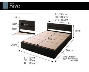 商品名LEDライト・コンセント付き収納ベッドEstado エスタード ゼルトスプリングマットレス付き シングル 商品スペック■ベッドフレーム 【サイズ】 シングル:幅101×長さ204×高さ70cm 床面までの高さ:26cm 引出し有効内寸:幅92×奥行き43×深さ10cm(実寸8cm) 【材質】本体:プリント化粧板、1500W2口コンセント、0.4WLED電球 【カラー】ホワイト・ブラック 【生産国】中国 ※各サイズ・重量は概算になります。